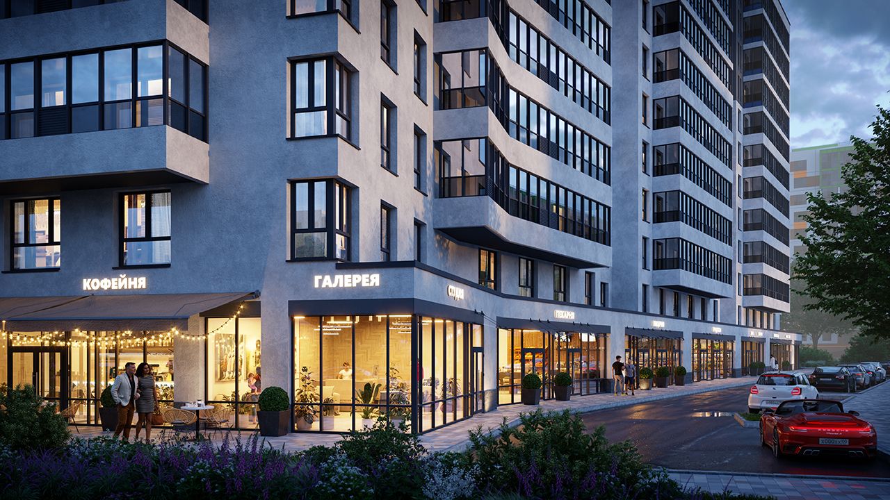 Квартал распланирован так, что от любого жилого комплекса до школы или детского сада можно дойти всего за пару минут. А для того, чтобы купить продукты, посетить салон красоты, студию йоги или кофейню, можно даже не покидать территорию дома.