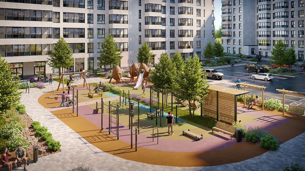 В каждом проекте есть собственный закрытый, охраняемый двор с игровыми комплексами, спортивными воркаутами и зонами для спокойного отдыха. Подземные паркинги и наземные парковки — обязательный стандарт комфорта от «Лидер Групп».
